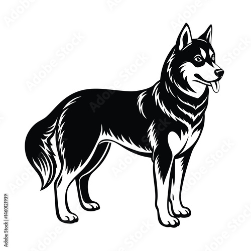 © PuspanjaliRani, Naklejka premium a clean black siberian husky dog vector art silhouette