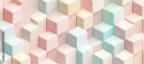 © Iqra, Obraz premium A clean minimalist pattern with pastel-colored cubes
