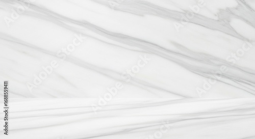 © adobesantren, Obraz premium A clean, minimalist studio background with a white marble texture, featuring diagonal gray veining on both the wall and floor.