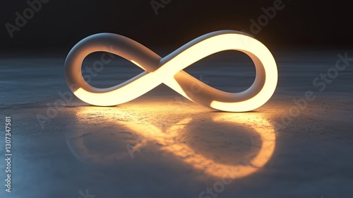 © Makhbuba, Fototapeta premium A clean, modern concept of a glowing infinity symbol on a neutral surface. picture