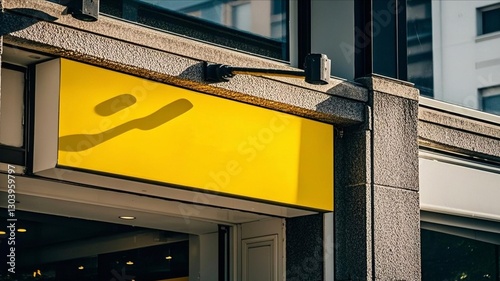 © Adi, Naklejka premium a clean plain yellow shop sign on the outside wall of the shop