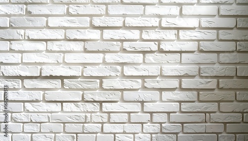 Fototapeta premium A clean, pristine white brick wall displays a repeating pattern of...