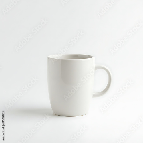 © Strother, Obraz premium A clean, simple white ceramic mug or coffee cup isolated on a plain white background. A minimalist object perfect for branding mockups.