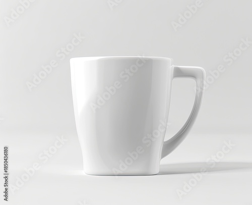 Obraz premium A clean, sleek, white ceramic mug against a plain white backdrop. A shadow...