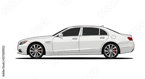 Fototapeta premium A clean vector illustration of a luxury white sedan in side view, with smooth...