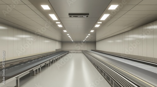 Naklejka premium A clean, well-lit packaging conveyor system with a space above the moving...