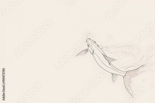 © Shahzad, Fototapeta premium A clean, white background with a single, elegant line drawing of a fish swimming. The simplicity and grace of the lines convey a sense of freedom and fluidity.