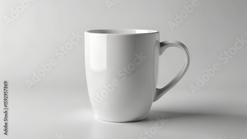 © msdvect, Fototapeta premium A clean white ceramic mug with a handle sits on a plain white background