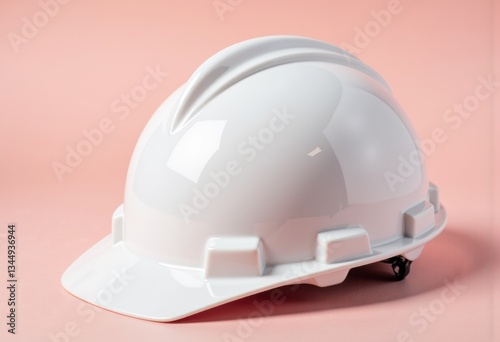 Fototapeta premium A clean, white construction helmet displayed on a soft pink background