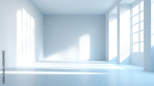 © Morning, Fototapeta premium A clean, white room with a large window.