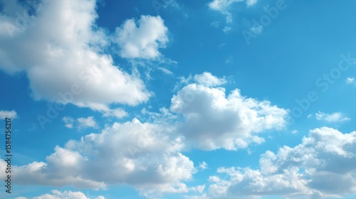Obraz premium A clear blue sky filled with fluffy white clouds, creating a serene and...