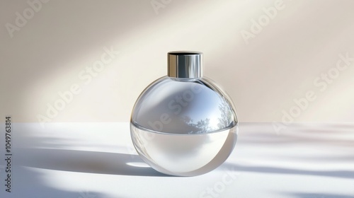 © CYBERPINK, Obraz premium A clear bottle with a silver cap sits on a white table