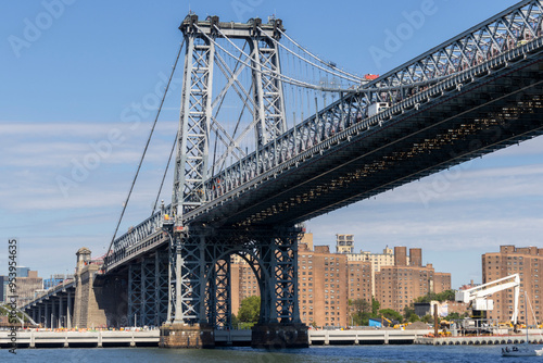 Naklejka premium A clear day view of the Manhattan skyline and Williamsburg Bridge with modern...