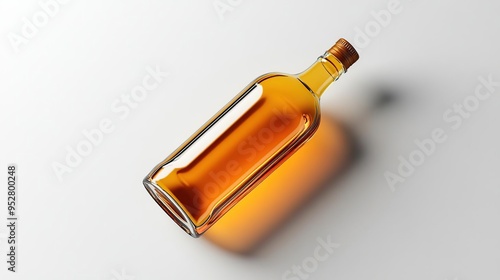 © R&R Studio, Fototapeta premium A clear glass bottle filled with amber liquid, showcasing its contents and design.