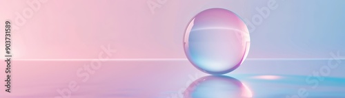 Obraz premium A clear sphere is floating on a pink background. The sphere is surrounded by a blue and pink reflection. The image has a calming and serene mood, with the clear sphere representing purity and the pink