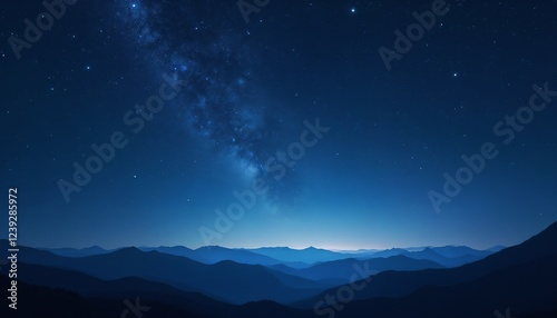 Naklejka premium A clear starry night sky filled with countless bright stars, with a silhouette of distant mountains below, soft natural lighting, calm and expansive composition