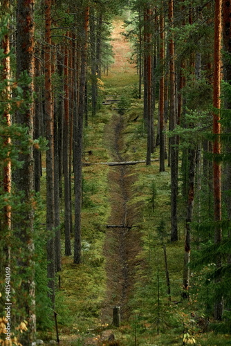 © NCKAHDEP, Fototapeta premium A clearing among the trunks of the autumn Karelian forest