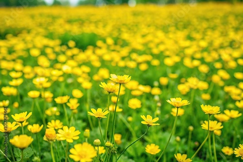 © anulak, Obraz premium A clearing of yellow flowers in a bright meadow