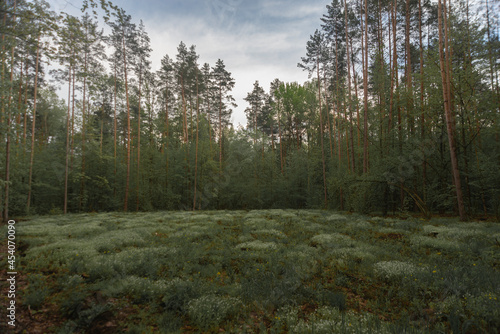 © Vitaliy Lischinskiy, Obraz premium A clearing with forest flowers in the middle of the forest