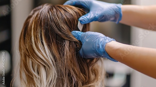 Fototapeta premium A client getting a trendy balayage hair coloring treatment.