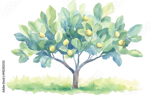 © Sukifli Dakheng, Fototapeta premium A clipart style watercolor illustration of a Pumpkin patch with various sizes of pumpkins, The background must be plain white to emphasize the illustration