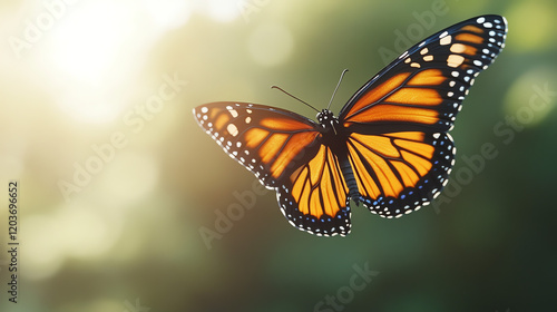 © Shazil, Fototapeta premium A close up butterfly in flight a blurred background.