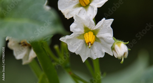 Fototapeta premium A close-up captures the delicate beauty of white potato flowers in full...