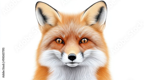 © A4719, Fototapeta premium A close-up illustration of a fox head, featuring bright orange fur, expressive eyes, and prominent ears, showcasing its distinct facial features.