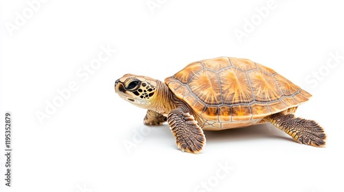 © UnderTheSun, Obraz premium A close-up image of a beautiful turtle showcasing its unique shell patterns and features against a white background, perfect for nature-themed projects.