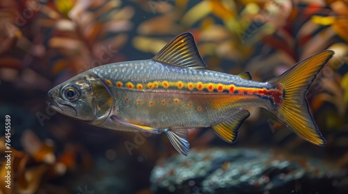 © Mikus, Fototapeta premium A close-up image of a fish in water, surrounded by plants in the background