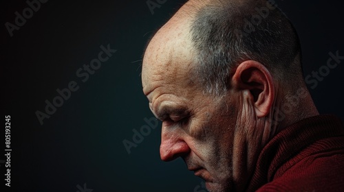 © Ева Поликарпова, Obraz premium A close-up image of a man with a bald head. Suitable for various concepts