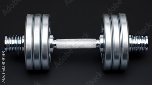 Naklejka premium A close-up image of a shiny dumbbell against a dark background, perfect for fitness-related content, gym promotions, and health articles, This image can add visual appeal to workout programs,