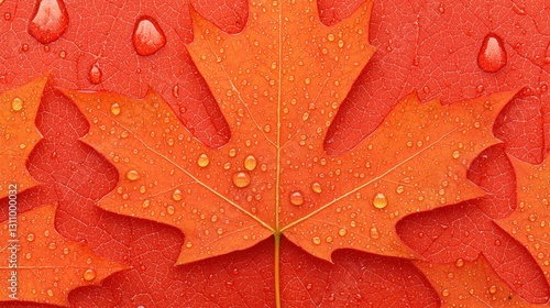 © Дмитрий Петров, Fototapeta premium A close-up image of a single maple leaf with water droplets on its surface.