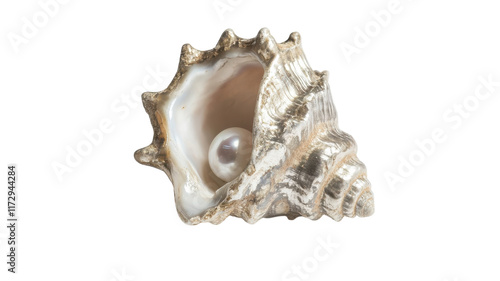 © Zainab, Naklejka premium A Close-Up Image of a Small Conch Shell with a Beautiful Pearly Interior, Ideal for Nature and Marine Life Designs or Educational Materials.