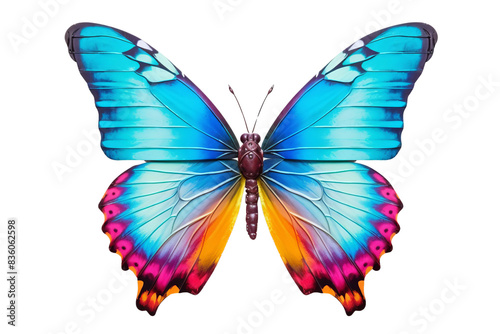 © Rattanathip, Fototapeta premium A close-up image of a vibrant butterfly with striking blue and pink wings, showcasing nature's beauty and the artistry of colorful wing patterns.