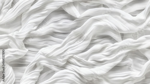 © lililia, Naklejka premium A close-up image of a white fabric draped and folded to create interesting textures and patterns SEAMLESS PATTERN
