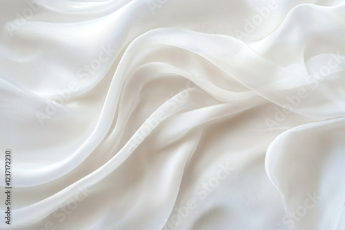 © PixPacks, Obraz premium A close-up image of a white fabric with soft, delicate lines, draped against a white background, A white background with soft, delicate lines intersecting
