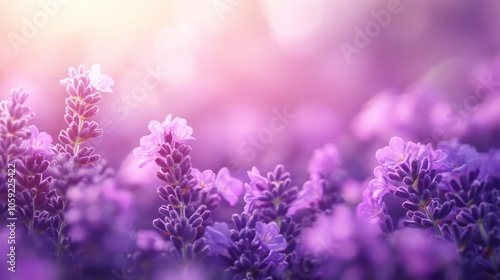© GradPlanet, Naklejka premium A close-up image showing a vibrant purple field with lavender and other flowers in sunlight,