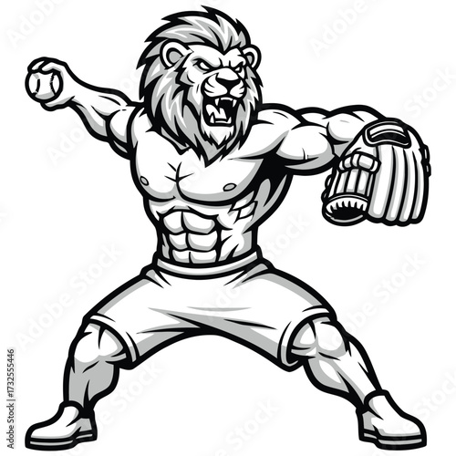 Fototapeta premium A close-up mascot illustration with muscular torso black and white only,...