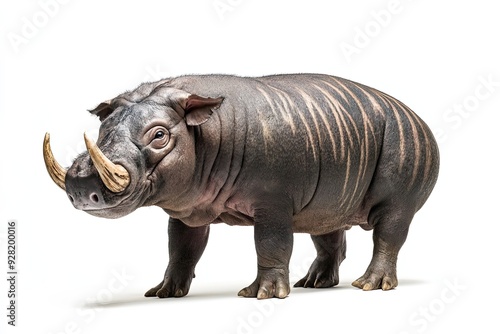 © Hungarian, Fototapeta premium A Close-up of a Babirusa with Large Tusks on white