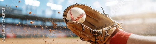 © Aurara, Fototapeta premium A close-up of a baseball glove catching a ball during an exciting game.