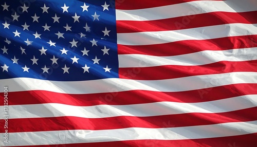 © Erlangga, Naklejka premium A close-up of a billowing flag displaying red and white stripes with a blue field of white stars