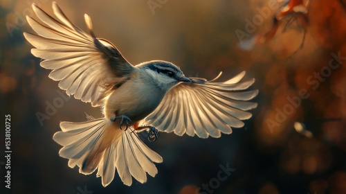 © วรรณภา มะโนศรี, Naklejka premium A close-up of a bird in flight with its plumage ruffled by the wind, creating a sense of movement and emphasizing the birds agility and grace.