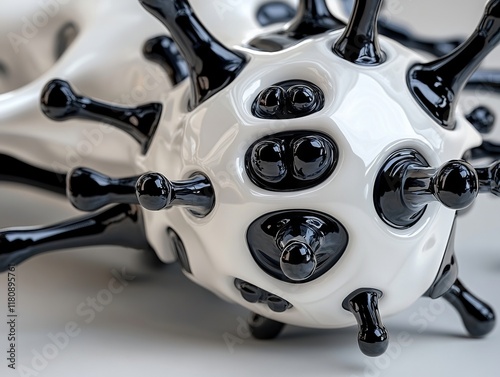 © VISUAL BACKGROUND, Fototapeta premium A close up of a black and white coronavirus on a white surface