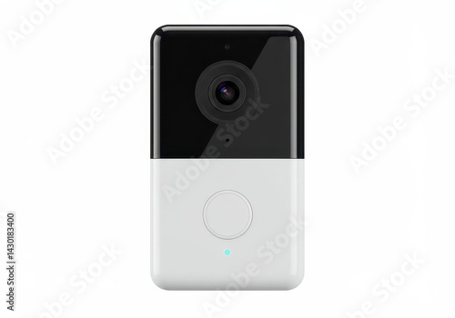 © Vooglo.com, Fototapeta premium A close up of a black and white security camera with a green light on a white background setup centered