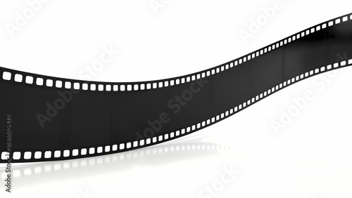 © Bruno Adachi, Fototapeta premium A close-up of a black film reel on a white background.