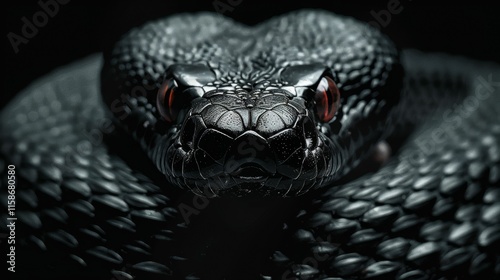 © Siyam, Fototapeta premium A close up of a black snake with red eyes