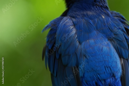 © Oleg, Fototapeta premium A close up of a blue bird with a green background