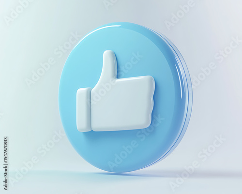 © ifra, Fototapeta premium A close up of a blue circle with a white thumbs up symbol on a white background
