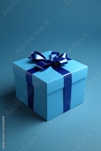 Obraz premium a close up of a blue gift box with a blue ribbon